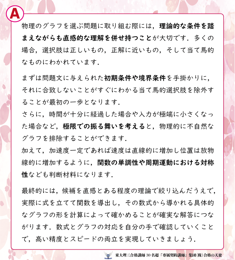 物理でグラフを選ぶような問題で,何を基準に選択すべきか