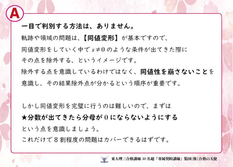 以上に掲載してきた質問回答は「ごくごく一部」の質問と回答であり、1人の受講生がたった1週間の質問回答で得られるものよりも少ない量です。当塾の受講生はここに掲載している回答を数学に限らず全教科、 1回に~10問程度、フリーコースの受講生は週に30~100問という量で得ていっているのです。これで実力が伸びないはずがないことはお分かりいただけると思います。