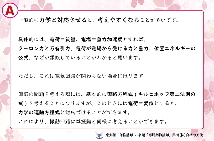 以下では、当塾が指導として行っている科目・質問数無制限の説明指導・回答指導・添削指導について、 当塾が誇る東大理三合格講師・東大医学部医学科)講師陣の実際の 物理の質問に対する個別指導の回答を掲載します。 これが医学部.難関大に驚異的合格率を誇る当塾の充実指導の証拠です。