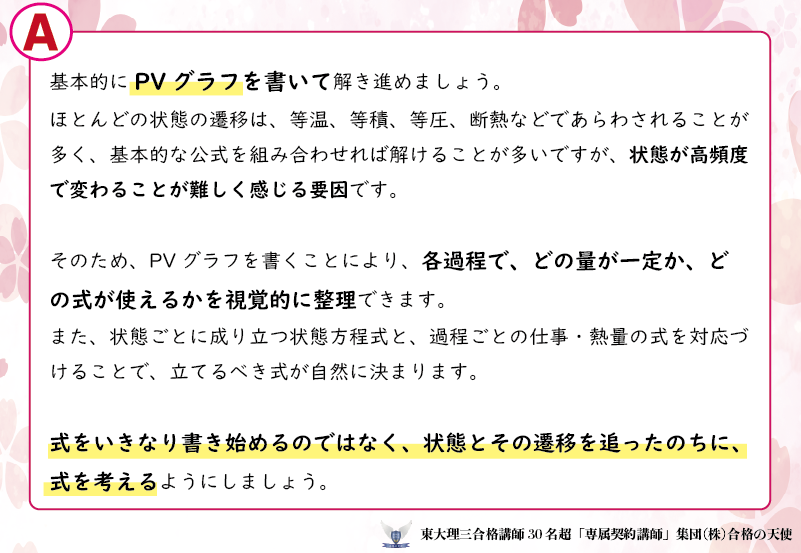 熱力学の問題を解くとき、どの状態について、式を立てればいいか分からなくなります。どうすればいいですか(´;ω;`)
